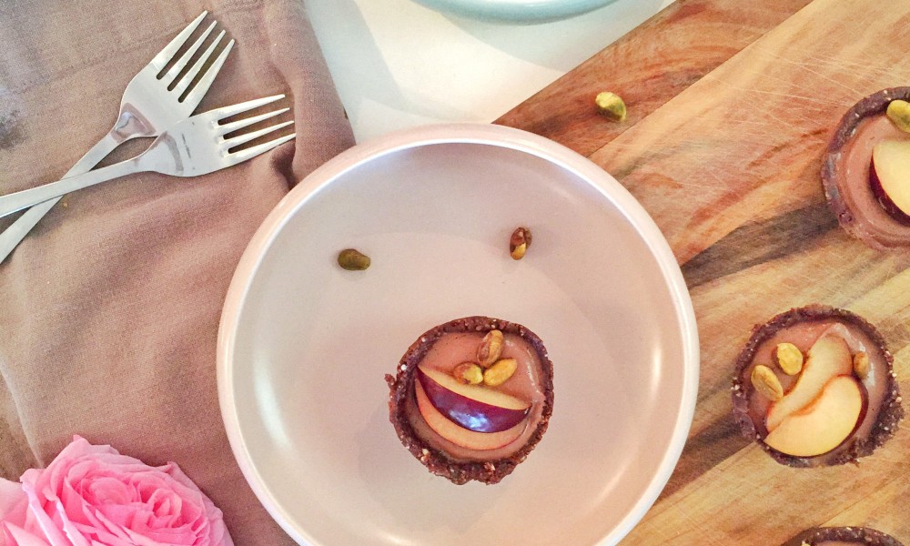 CHOCOLATE CREAM CUPS WITH PISTACHIO AND PLUM I recently purchased a silicon cupcake pan, for some mini…